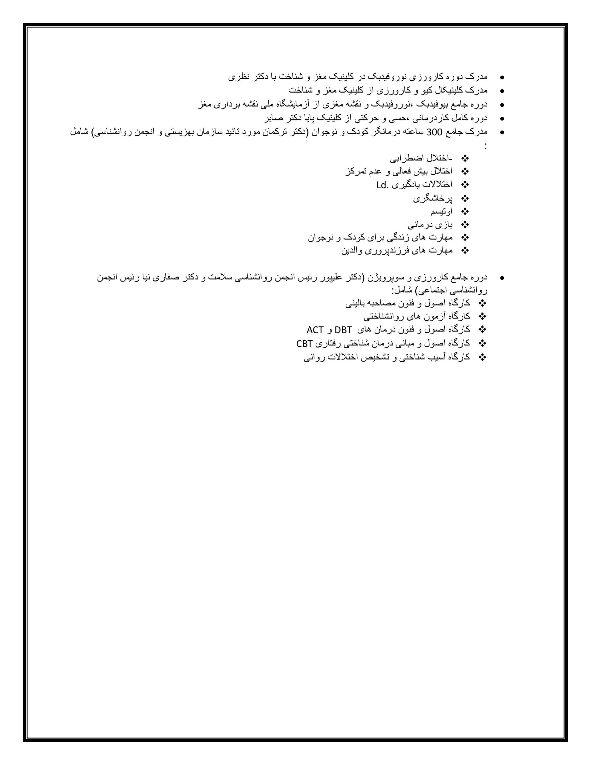 گذراندن دوره نوروفیدبک پیشرفته و درمان بالینی در مرکز ملی نقشه برداری مغز ایران.